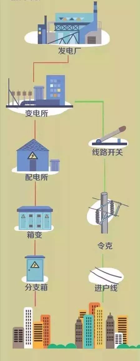 我們常說的電力系統(tǒng)是指由發(fā)電、輸電、配電、用電等環(huán)節(jié)組成的電能生產(chǎn)、傳輸、分配和消費(fèi)的系統(tǒng)。電從發(fā)電廠發(fā)出后,在經(jīng)過變電所(站)、配電所(站)、分支箱等等環(huán)節(jié)的處理和輸電線的輸送才來到我們的身邊。